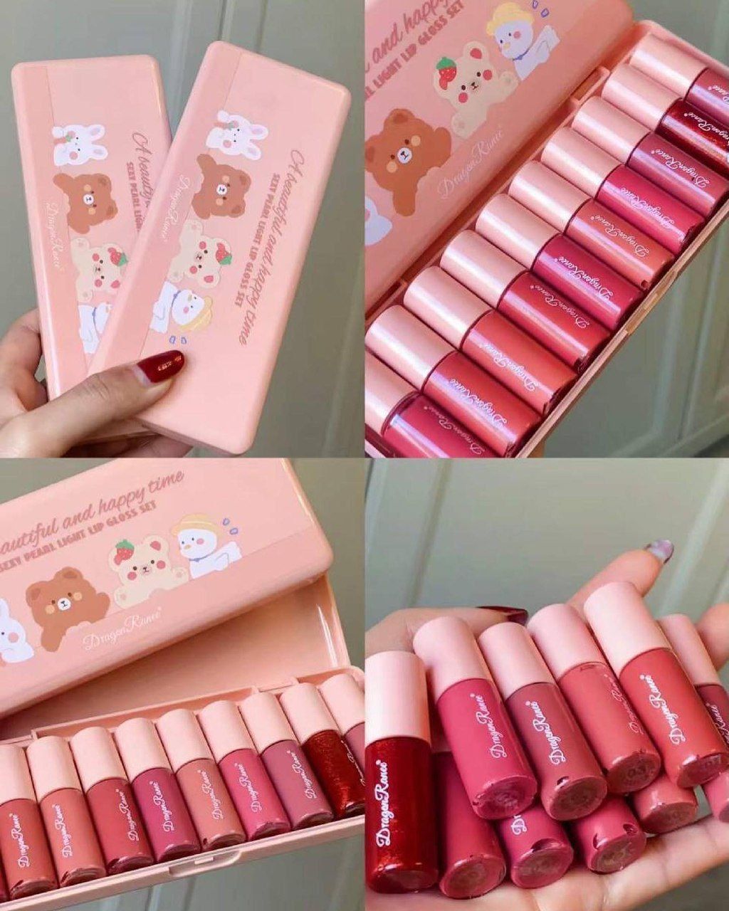 پک ۱۰تایی رژلب مایع و لیپ گلاس و شاین کادویی Dragon Rene